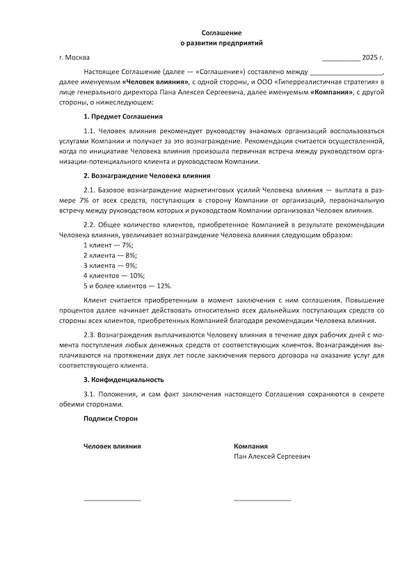 Станьте «человеком влияния», рекомендуйте наш подход и услугу к применению в организациях — которые находятся в вашем бизнес-ареале как профессионала/эксперта/«лидера мнений» — и получайте партнерское экспертное вознаграждение. См. наше предложение по ссылке ниже.